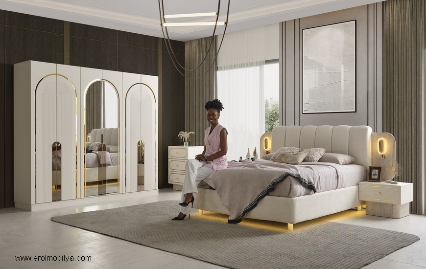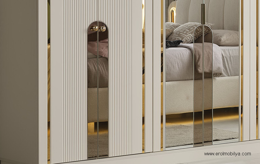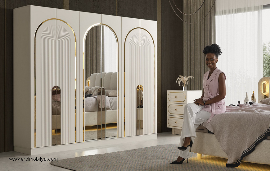 Ürüne Ait Parça Adetleri : 6 Kapılı Dolap, Şifonyer + Aynası, 2 Adet Komodin, Başlık , Çamaşırlık